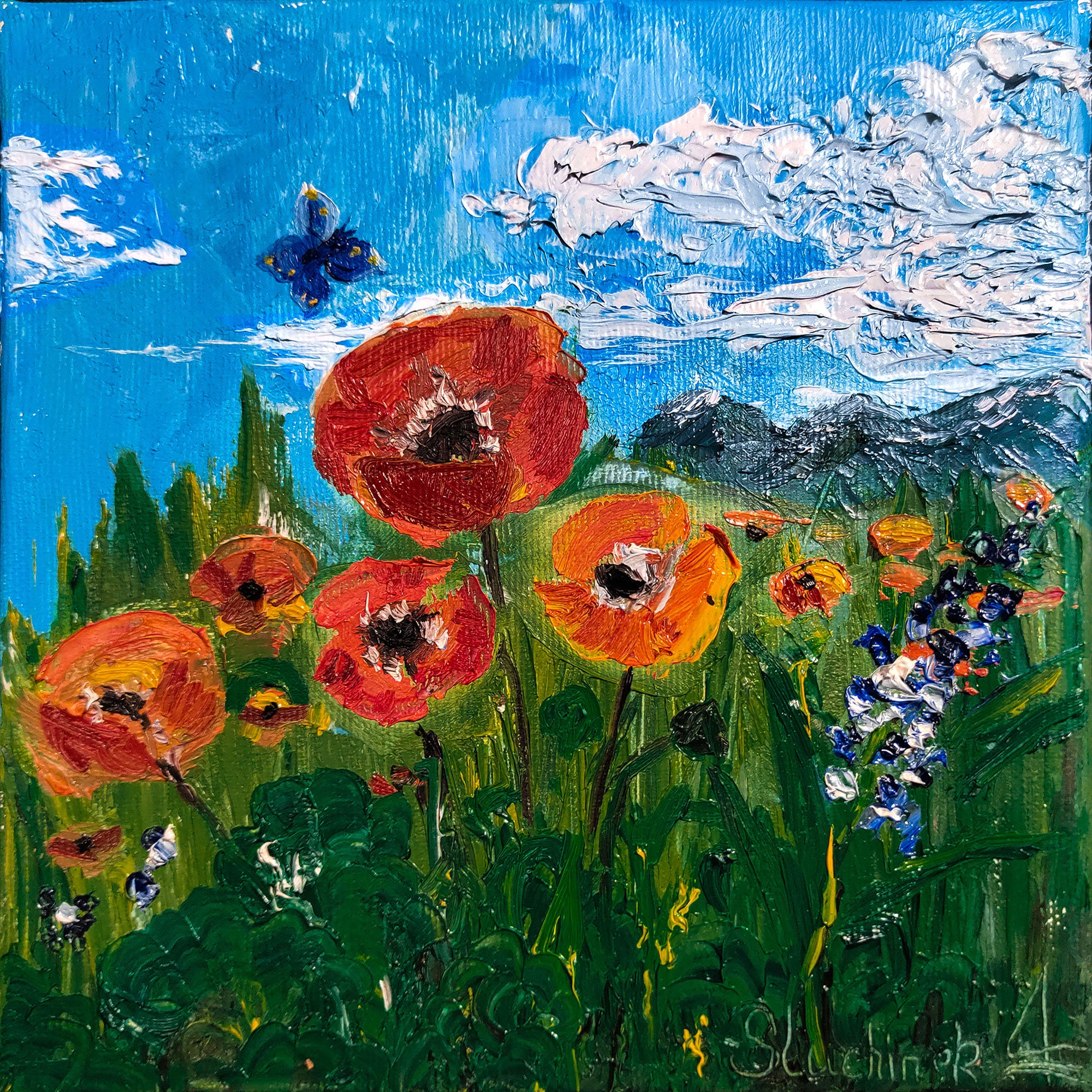 Poppy Painting Original Art Impasto Oil Painting Textured Botanical Artwork Flower Wall Art 8by 8 By Alinaartsgallery Etsy Uk